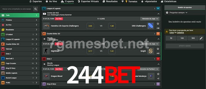 O 244bet oferece uma grande seleção de opções de apostas em e-sports com probabilidades competitivas